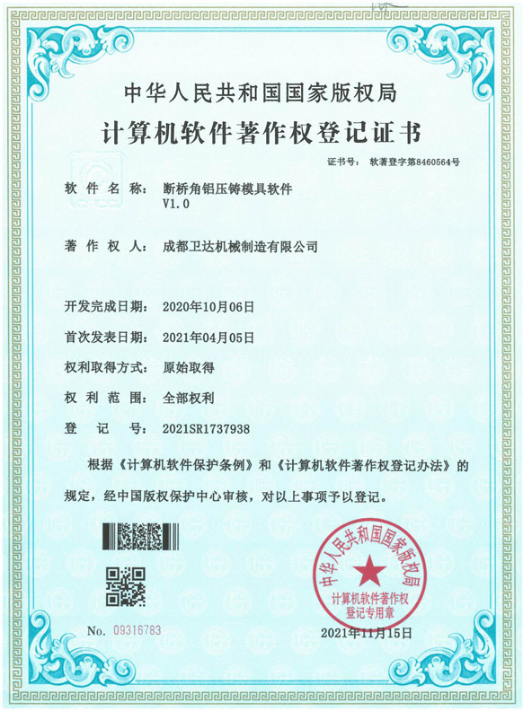 成都衛達機械制造有限公司是一家具有30余項專利、ISO9001:2015質量管理體系認證、安全標準化認證的民營獨資企業;是一家專業從事有色金屬高壓鑄造、壓鑄模具研發、設計、制造,鋁型材焊接、產品精密加工及產品表面噴塑的高新技術、專精特新企業。具有20年以上的生產經驗,為客戶提供專業、性價比高的關于產品開發--模具設計--模具制造--產品壓鑄--產品精密加工--產品表面處理等一條龍的解決方案。 公司產品涵蓋消防、閥門、LED、CNG/LNG、農機、衛星通訊、汽摩配件、建筑結構件、自動化零部件、出口鋁梯、燃氣輸配、消費電子等多個行業和領域,與幾十家國有控股、民營企業建立了長期合做關系,其中鋁型材焊接、精密加工產品已100%出口,部分系列壓鑄件也已遠銷美國、法國、日本、丹麥、瑞士、瑞典等國家。